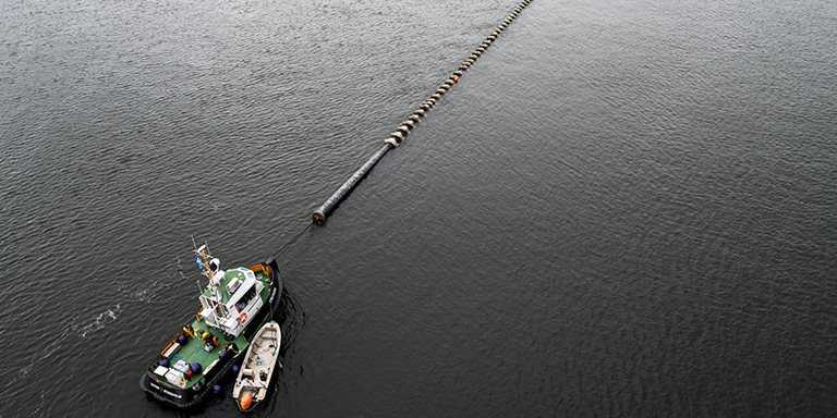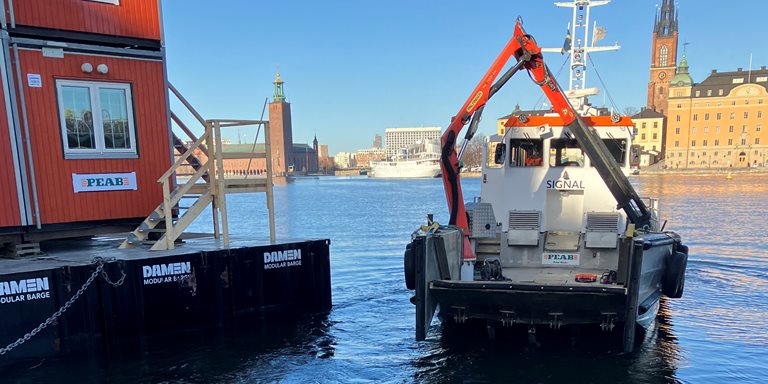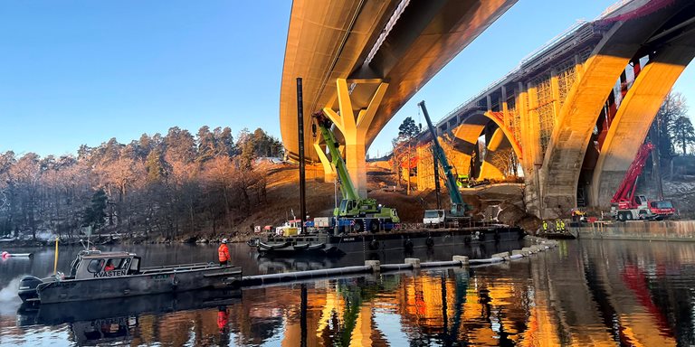 Peab Marin har utfört sjökabelförläggning av fjärrvärmerör i sundet under Skurubon i Nacka.
