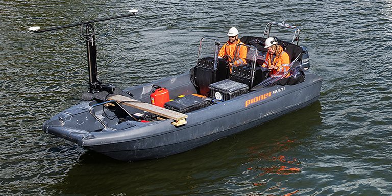 Trailerbart mätfartyg anpassat för kustnära sjömätning och undersökningar.